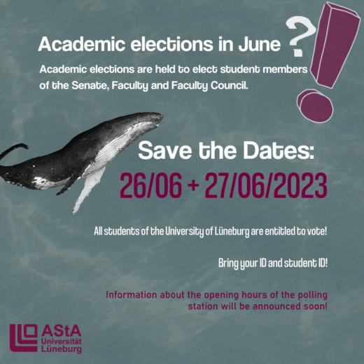 The first whales 🐳 have been spotted on campus already 👀– in 10 days the time has come and the academic elections begin! 🗓 Save the dates: On 26.06 (9am – 4pm) and 27.06 (9am –...