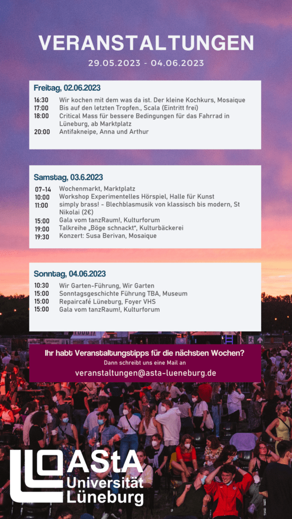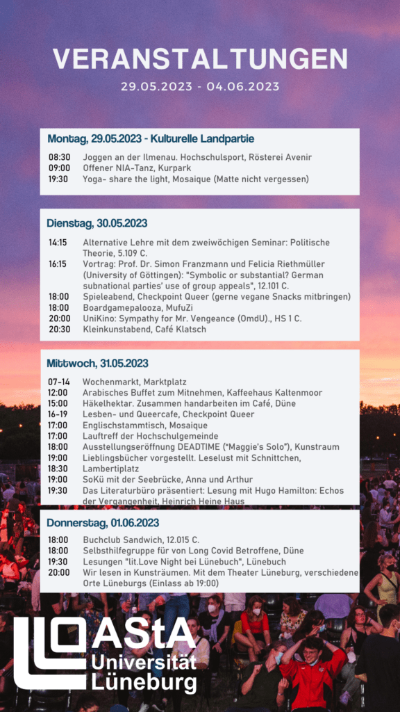 Veranstaltungskalender 29.05.2023-04.06.2023 28. May 2023 Last updated 5. March 2025 | Oeffentlichkeit