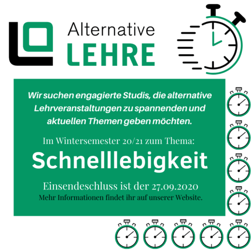 Auch im Januar gibt es noch neue Angebote von der Alternativen Lehre – zusätzlich zu dem bereits laufenden Programm. Kommende Woche (13.01.) könnt ihr euch mit “Achtsamkeit&Biorhytmus” auseinandersetzen und am letzten Januarwochenende haben wir noch was...