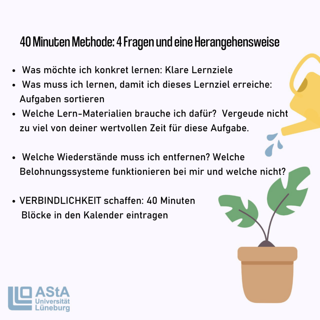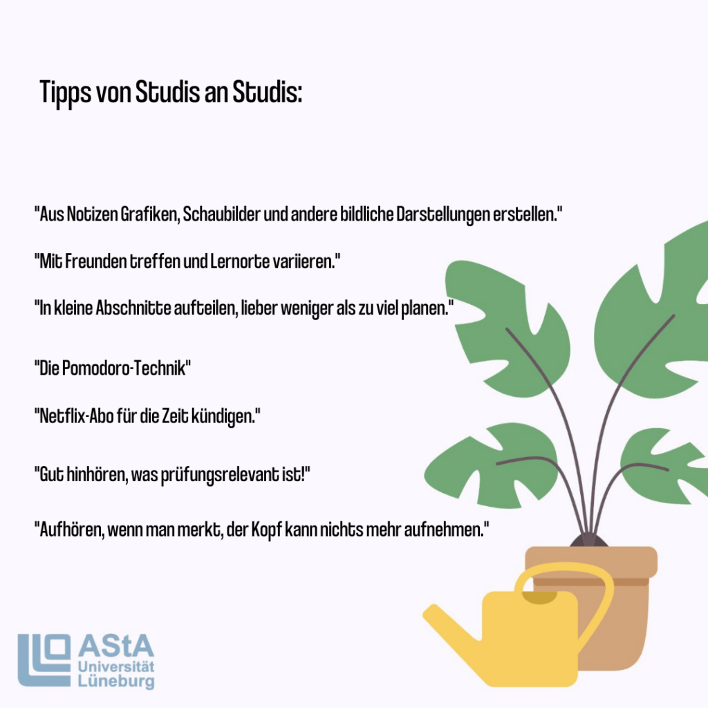 Falls du noch auf der Suche bist, oder dabei bist, verschiedene Techniken auszuprobieren, ist dieser Post genau richtig für dich: Wir stellen dir zwei Methoden vor und andere Studis teilen ihre Tipps und Tricks. Auf unserer Website findest du außerdem einen Blanko-Lernplan, falls es dir nach etwas Struktur ist.