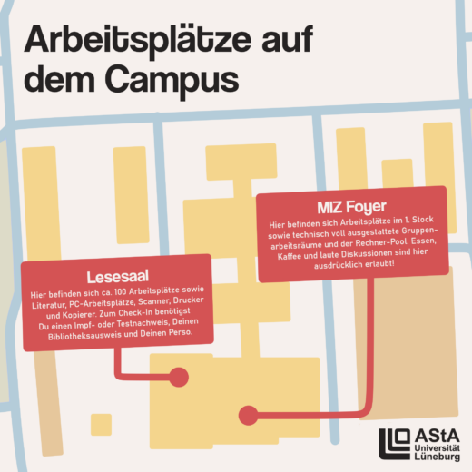 Damit ihr in der Prüfungszeit auch einen ruhigen Ort zum Lernen findet, haben wir euch eine Übersicht mit den aktuellen Lernorten auf dem Campus zusammengestellt. Grundsätzlich gilt: Maskenpflicht und 3G-Regelung in allen Gebäuden. Eine Übersicht und...
