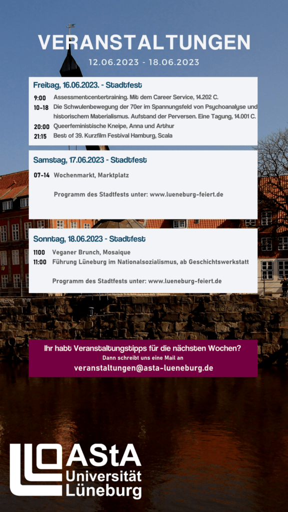 Veranstaltungskalender 12.06.2023-18.06.2023 12. Juni 2023 Last updated 12. Juni 2023 | Oeffentlichkeit Link zum Stadtfest-Programm: www.lueneburg-feiert.de