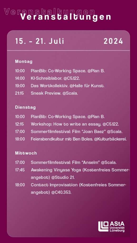 Veranstaltungskalender // 15.07.2024 – 21.07.2024