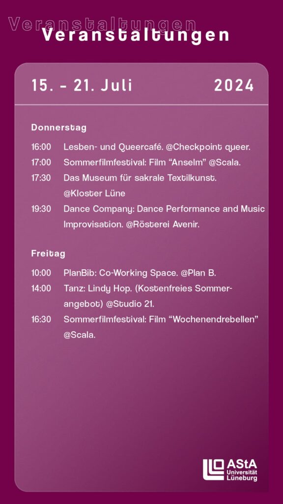 Betrieben durch den Allgemeinen Student*innenausschuss der Universität Lüneburg.
